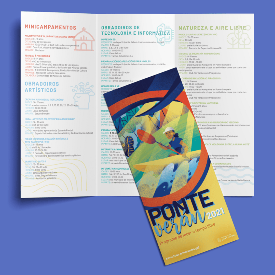 Design and illustration for “Ponteverán”. This is a program of activities leaded for the Pontevedra town hall.