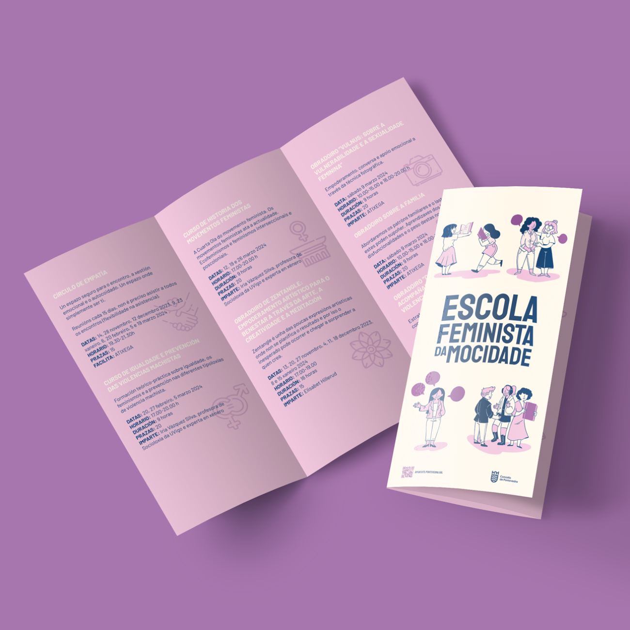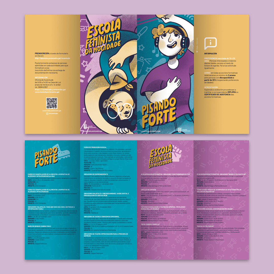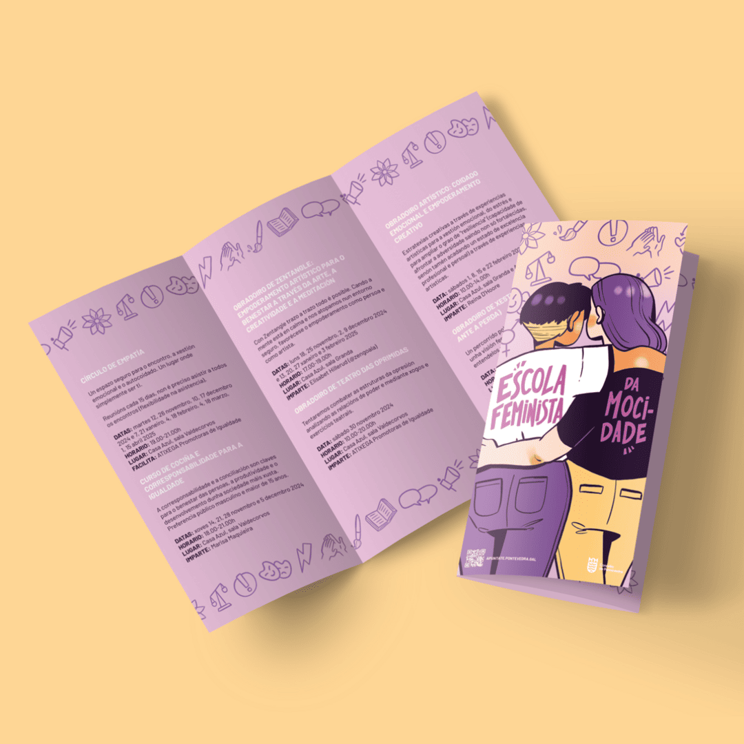 Diseños e ilustración para A Escola Feminista da Mocidade, un espacio activo de formación, encuentro y reflexión colectiva con